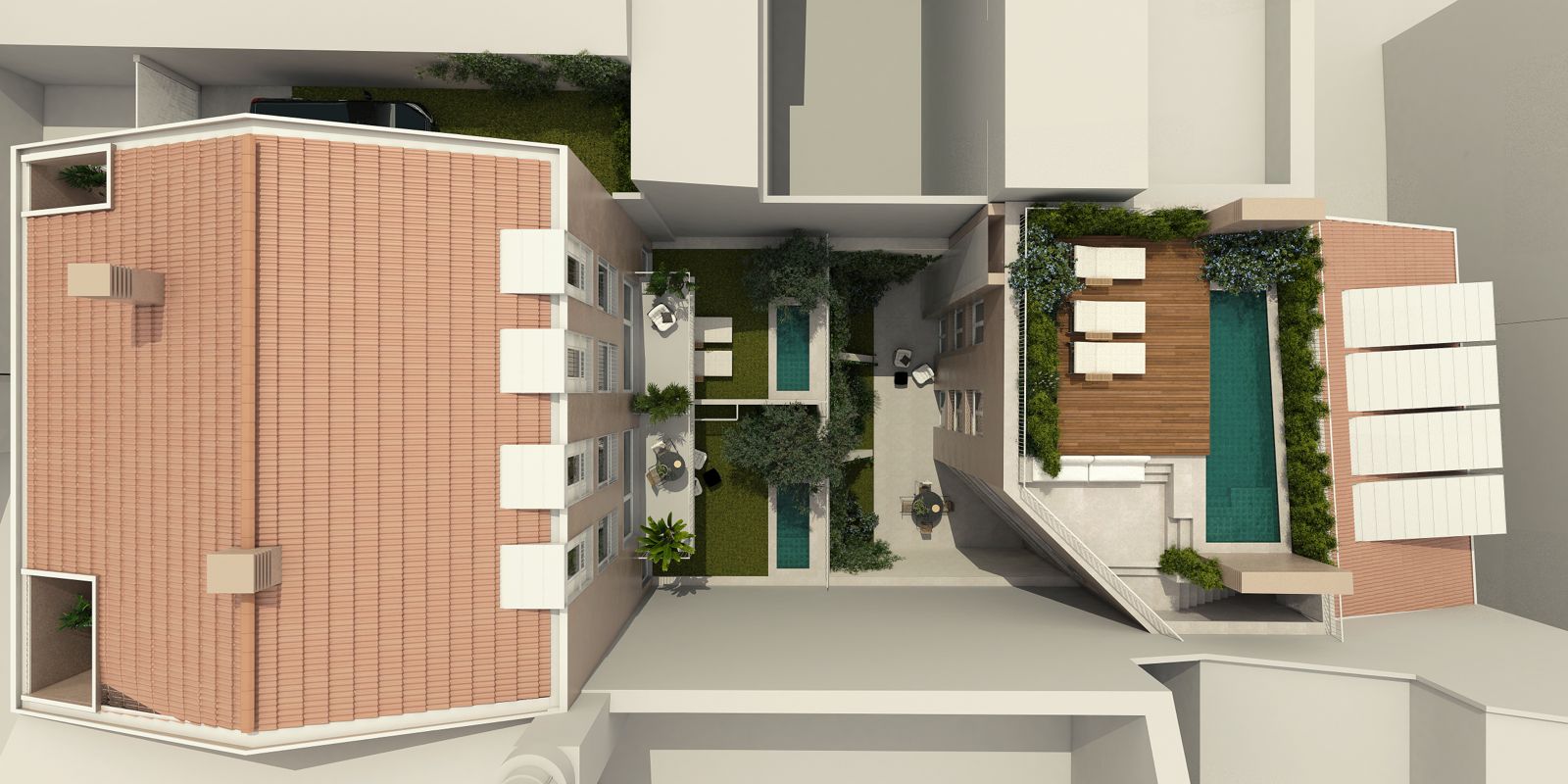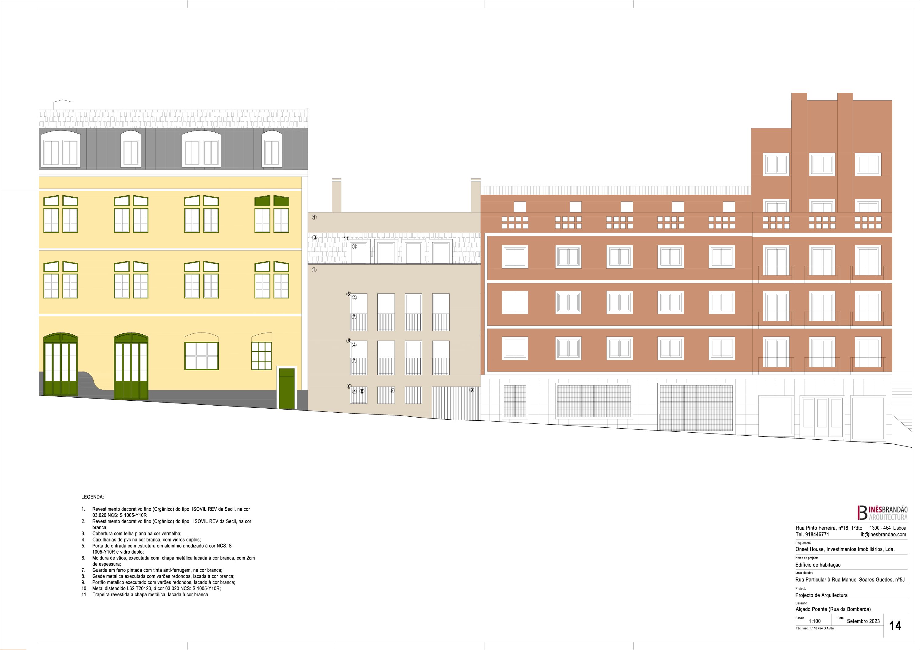 O projeto aprovado é composto por dois edifícios independentes: um destinado a cinco apartamentos, e outro composto por duas moradias privadas. Ambos os edifícios foram concebidos para maximizar a privacidade, a luz natural e a vivência de espaços exteriores. A linguagem arquitetónica combina linhas contemporâneas e depuradas com uma interpretação elegante das formas tradicionais de Lisboa.